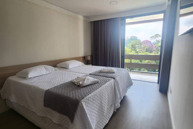 A acomodação casal oferece conforto e simplicidade em cada detalhe. Perfeita para momentos a dois, vocês podem optar por uma vista para a piscina, para o grande lago ou para a exuberante Mata Atlântica.