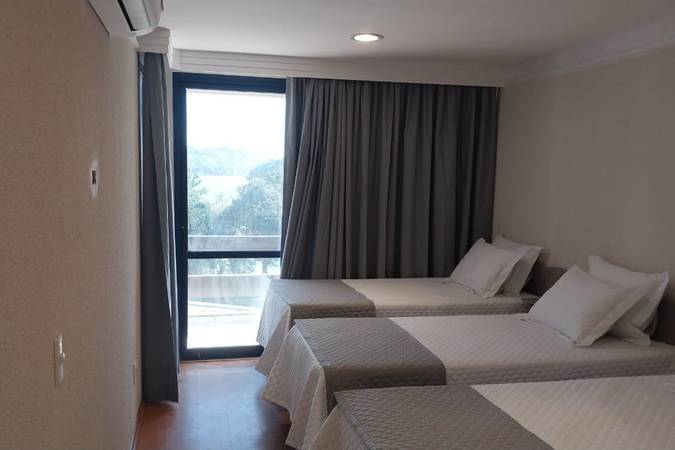 A acomodação triplo solteiro foi planejada para pequenos grupos inseparáveis. As acomodações podem ter vista para a piscina, o grande lago ou para a Mata Atlântica, vocês quem escolhem!
